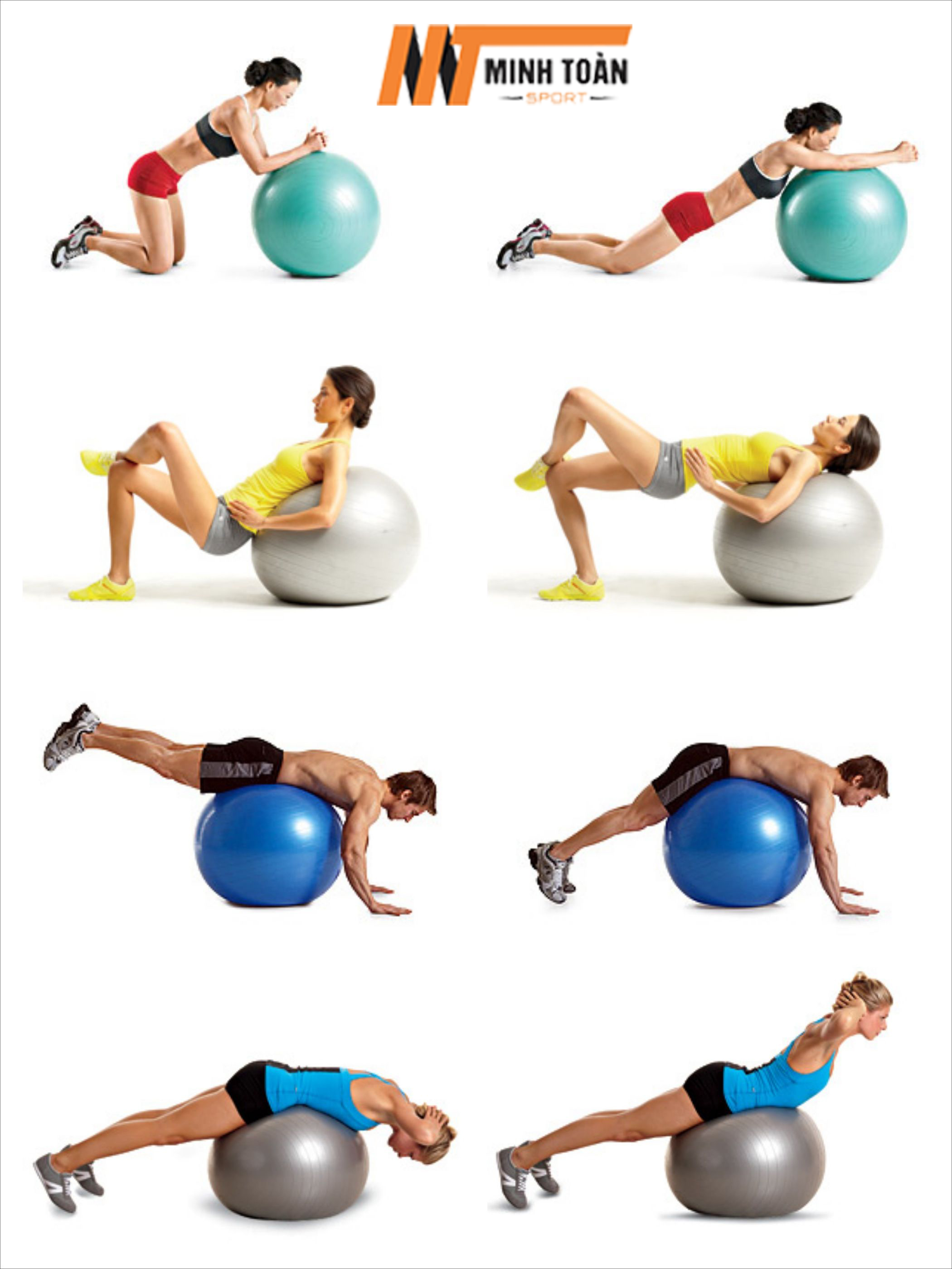 Có rất nhiều bài tập khác nhau, giúp người tập không cảm thấy nhàm chán và tìm ra bài tập bóng Yoga thích hợp với thể chất của bản thân. Sau đây là một số bài tập cơ bản kết hợp bóng Yoga mà Thể thao Minh Toàn muốn giới thiệu đến mọi người: