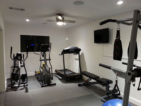 Bạn đừng quên lắp đặt các phụ kiện đi kèm trong phòng gym trong nhà như gương, tivi, loa,... Những phụ kiện này không chỉ phục vụ chức năng cho người dùng mà còn giúp buổi tập luyện vui vẻ hơn rất nhiều.