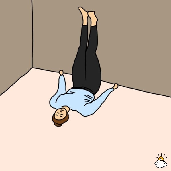 - Nằm ngửa sát tường, đặt 2 chân lên tường.