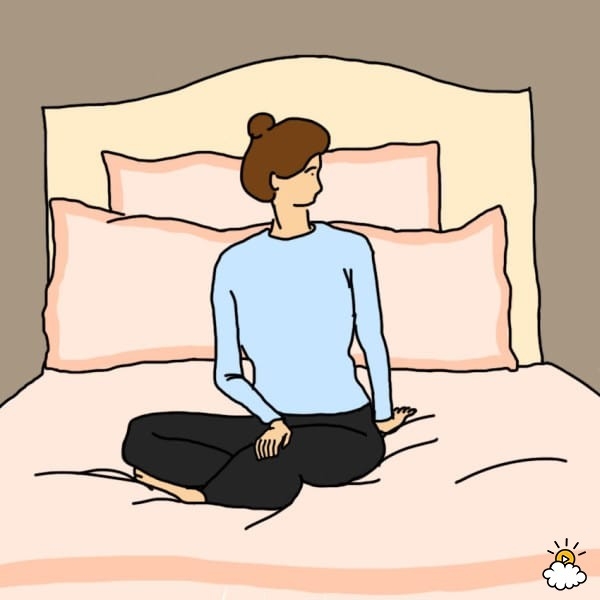 - Ngồi khoanh chân trên giường, thẳng lưng.