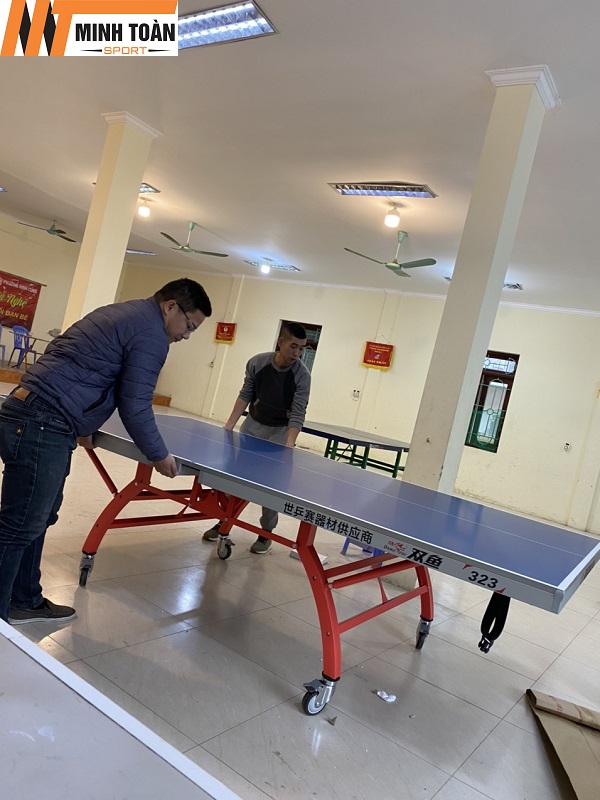 - Bàn bóng bàn nhập khẩu chất lượng tốt, kiểu dáng đẹp, mặt bàn phẳng, sơn mịn, di chuyển bằng bánh xe dễ dàng.