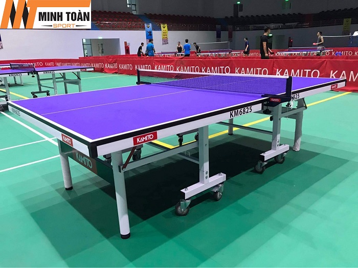 Kamito 6825 sẽ sử dụng tốt cho thi đấu, cơ quan và hộ gia đình, bàn có thể xếp gọn khi không sử dụng một cách thuận lợi và rất cơ động. Bàn có độ dày mặt bàn 25mm, độ dày nẹp bàn 50mm và kích thước chân bàn 50mm x 50mm và Ø60mm.