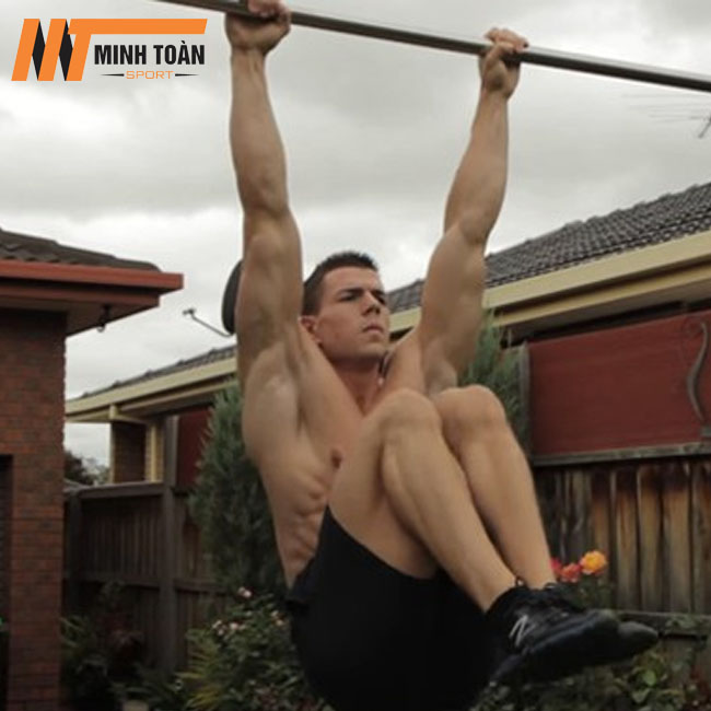 - Tiến hành nâng hai chân gập bụng đến khi hai chân chạm vào thanh xà và hạ về vị trí bắt đầu.