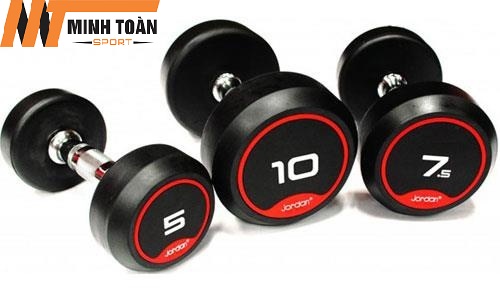 Đây là mẫu tạ tay được sử dụng rất phổ biến trong các phòng tập Gym cao cấp. Tạ tay Jordan được làm từ chất liệu thép, bọc cao su ở bên ngoài và phần tay cầm được mạ chrome giúp chống rỉ sét khi tập lâu ngày. Loại tạ này có các mức trọng lượng gồm 2.5kg, 5kg, 7.5kg, 10kg, 12.5kg, 15kg, 17.5kg, 20kg, 22.5kg, 25kg, 27.5kg, 30kg, 32.5kg, 35kg, 37.5kg, 40kg và có giá bán 65.000 đồng/kg. Cũng như tạ tay Brosman, tạ Jordan có ưu điểm là bền, thiết kế đẹp mắt và nó cũng có nhược điểm là giá thành cao.