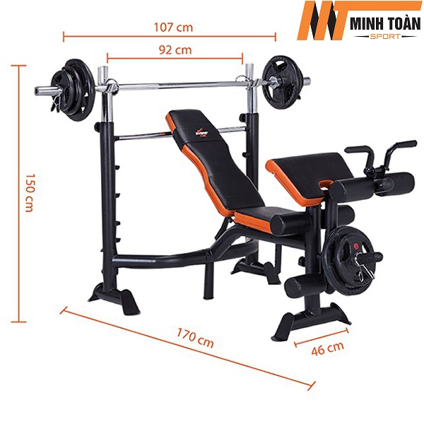 – Phần ghế tạ sử dụng loại đòn dài 1,5 m.