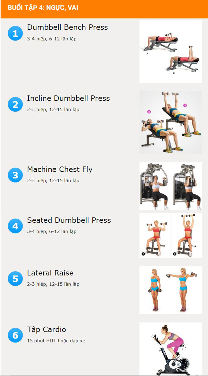 Chi tiết Giáo Án Thể Hình - Gym cho Nữ mới tập từ 1-5 tháng tiêu chuẩn