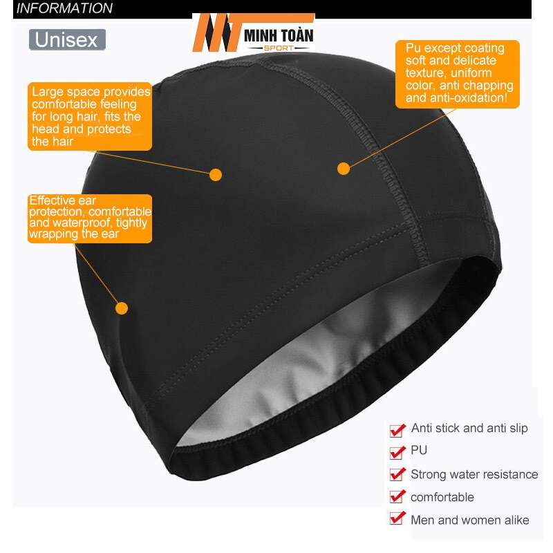 - Chất Liệu: mũ bơi làm bằng chất liệu silicon rất mềm mại, chống thấm nước.