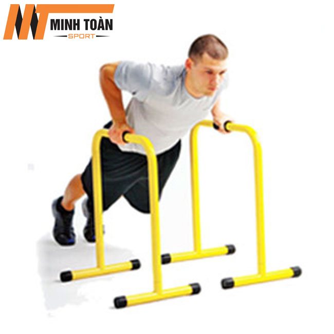 - Bước 1: Bạn đứng thẳng giữa 2 thanh xà kép và đẩy tay để nâng thân người lên cao.