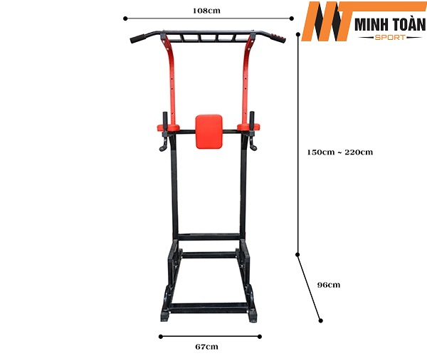 - Kích thước xà đơn T056 khi lắp đặt rùi: 140 x 90 cm. Chiều cao điều chỉnh từ 165 - 225 cm