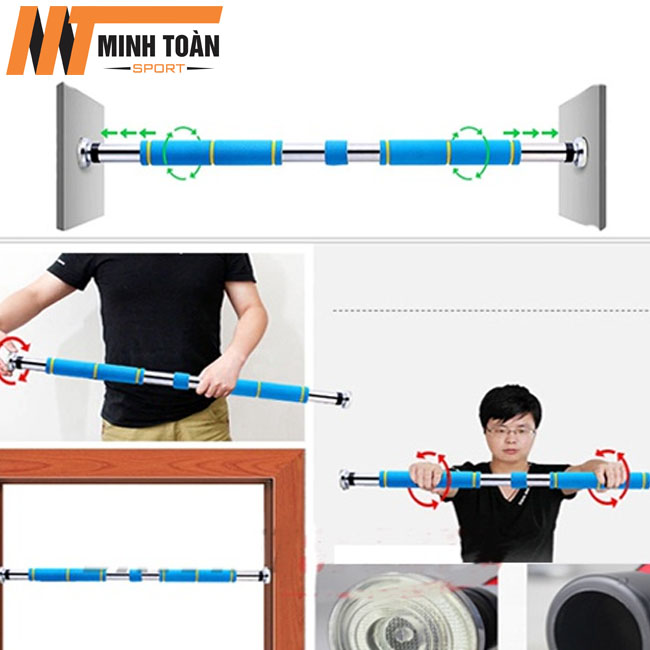 - Cuối cùng bạn vặn hai đầu xà đơn ra cho đến khi chạm khít khung cửa hoặc khoảng cách hai bức tường. Lưu ý bạn cầm 1 tay cầm giữ xà đơn và tay còn lại thực hiện di chuyển giữa thanh xà. Sau đó bạn vặn ở giữa xà đơn sao cho lực đẩy ép đều hai bên cửa. Bạn dùng cả hai tay vặn lại chặt một lần nữa cho chắc chắn là xong.