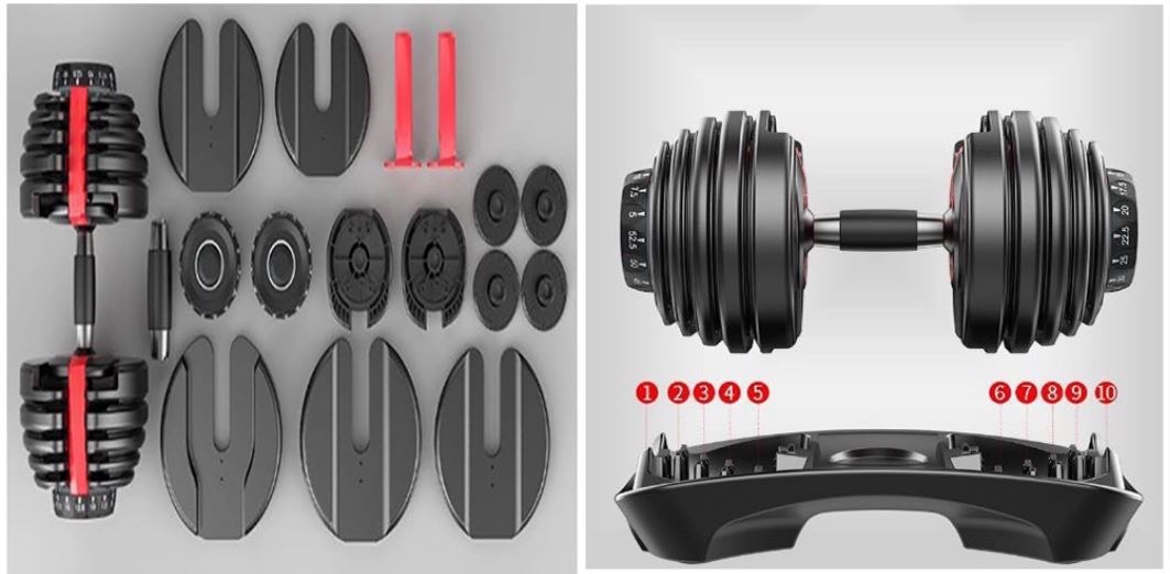 - Gồm 30 bài tập có sẵn, trọng lượng cài đặt thay đổi dễ dàng các mức kg từ 5-24kg/tay.