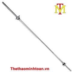 - Đòn tạ dài đặc được đúc bằng Thép thanh với độ cứng cáp chịu lực cực cao, sử dụng công nghệ phun crom, có ốc vặn hai đầu