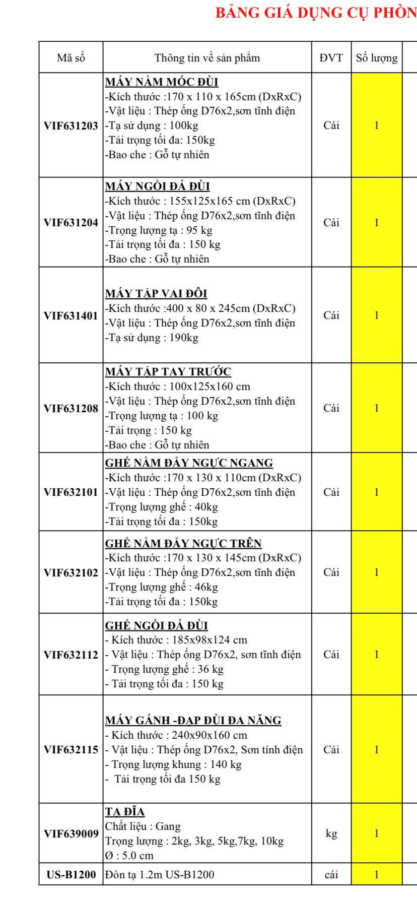 - Kích thước lắp đặt giàn tạ: 1980 x 1050 x 2200 mm
