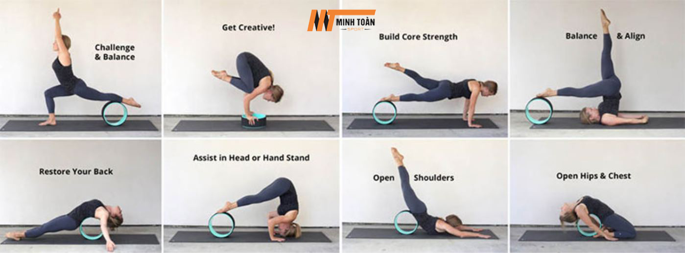 Vòng Tập Yoga được sử dụng trong các bài tập Yoga giúp hỗ trợ điều trị đau lưng, massage cho cột sống. Sử dụng vòng tập Yoga tại Thể thao Minh Toàn với các bài tập uốn lưng ở mọi tư thế, giúp mở vai và phần lưng trên dễ dàng, tăng cường sức mạnh và sự dẻo dai, hỗ trợ vào tư thế thuận tiện hơn.