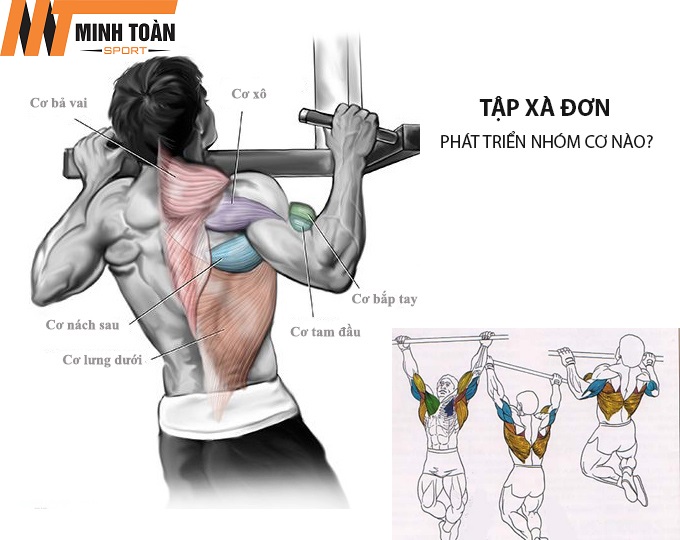 - Hỗ trợ tập gym: Tập luyện xà đơn sẽ có những tác động rất tốt tới các nhóm cơ như cơ lưng, cơ bụng, cơ vai, cơ tay... Ngoài ra, xà đơn gắn cửa còn giúp bạn dễ dàng thực hiện chống đẩy, giúp phát triển cơ tay sau, cơ bắp chân và cơ mông đùi.