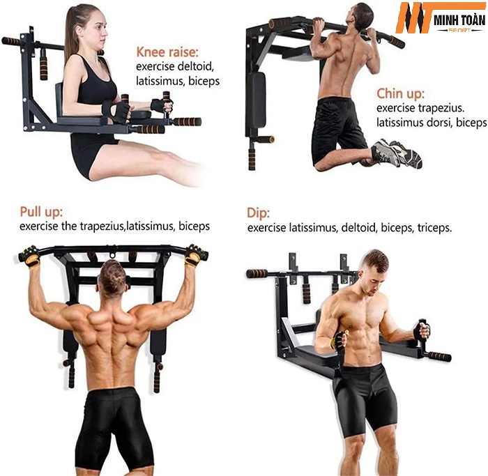 - Xà đơn treo tường đa năng phục vụ đa dạng các bài tập khác nhau cho từng nhóm cơ như: cơ bụng,cơ tay,cơ vai,eo,lưng,chân…