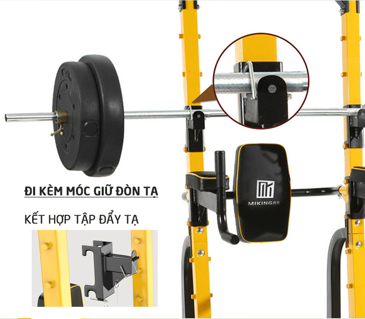 - Có thêm móc giá đỡ đòn tạ để tập đẩy tạ