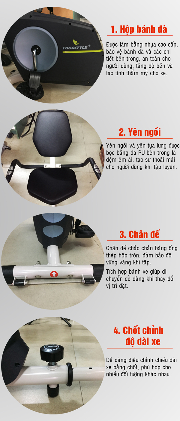 - - Tay cầm bọc mút cao cấp, tích hợp cảm biến nhịp tim.